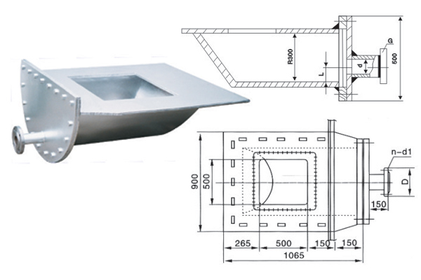 GSP帶放水管排污孔主要外形與法蘭連接尺寸: